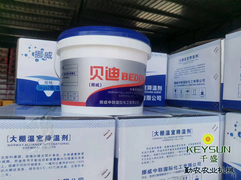 山東禹城勤農(nóng)大棚降溫劑能有效解決蔬菜大棚內(nèi)強(qiáng)光和高溫問(wèn)題,為作物提供理想的溫光生長(zhǎng)環(huán)境。降溫劑在溫室表面形成白色涂層,將太陽(yáng)直射光轉(zhuǎn)變?yōu)樯⑸涔?,并有效反射產(chǎn)生熱量的紅外光,從而起到遮陽(yáng)、降溫、防止棚膜老化